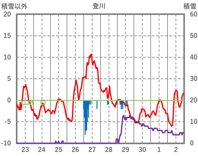 | 日 | 時 | 気温 | 降水 | 風向/風速 | 日照 | 積雪 | 降雪 |
