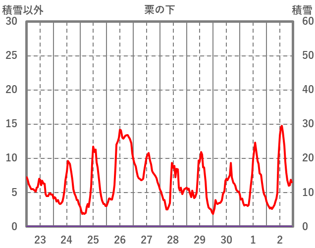 | 日 | 時 | 気温 | 降水 | 風向/風速 | 日照 | 積雪 | 降雪 |