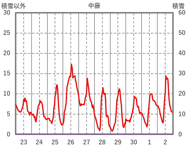 | 日 | 時 | 気温 | 降水 | 風向/風速 | 日照 | 積雪 | 降雪 |