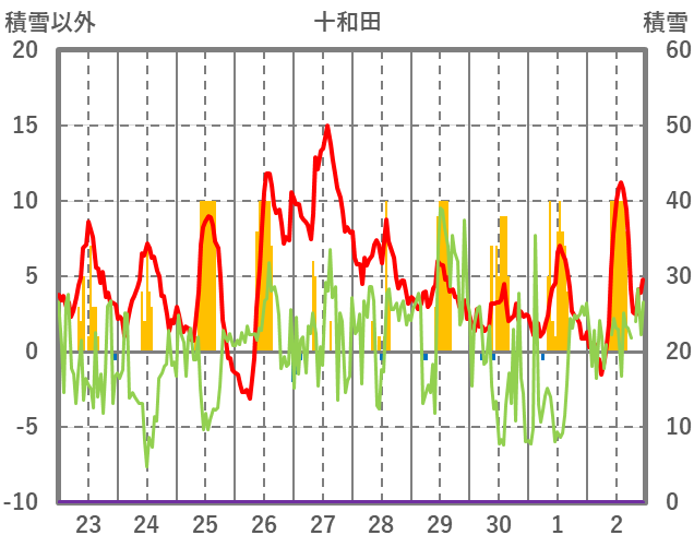 | 日 | 時 | 気温 | 降水 | 風向/風速 | 日照 | 積雪 | 降雪 |
