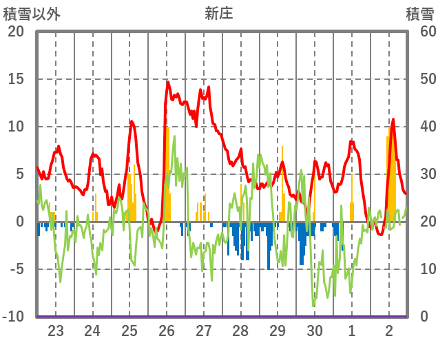 | 日 | 時 | 気温 | 降水 | 風向/風速 | 日照 | 積雪 | 降雪 |