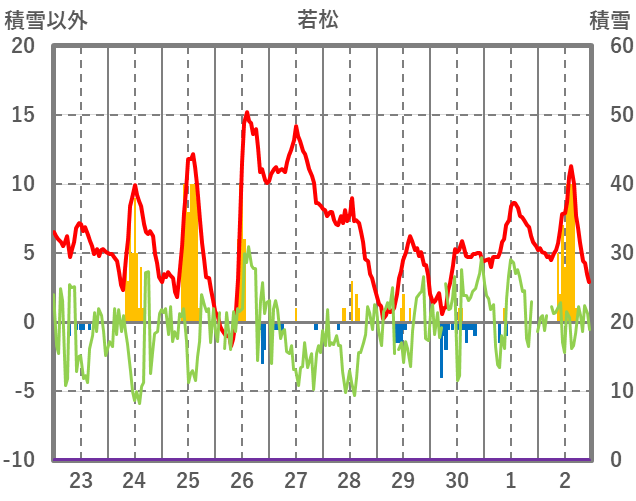 | 日 | 時 | 気温 | 降水 | 風向/風速 | 日照 | 積雪 | 降雪 |
