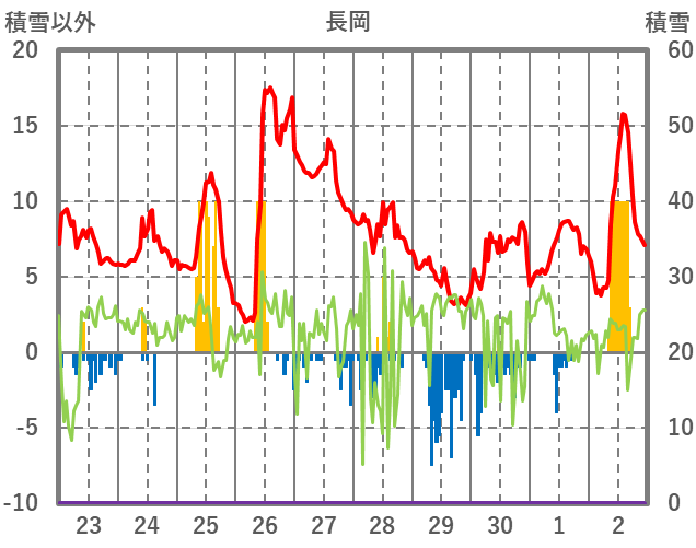 | 日 | 時 | 気温 | 降水 | 風向/風速 | 日照 | 積雪 | 降雪 |