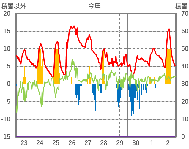 | 日 | 時 | 気温 | 降水 | 風向/風速 | 日照 | 積雪 | 降雪 |