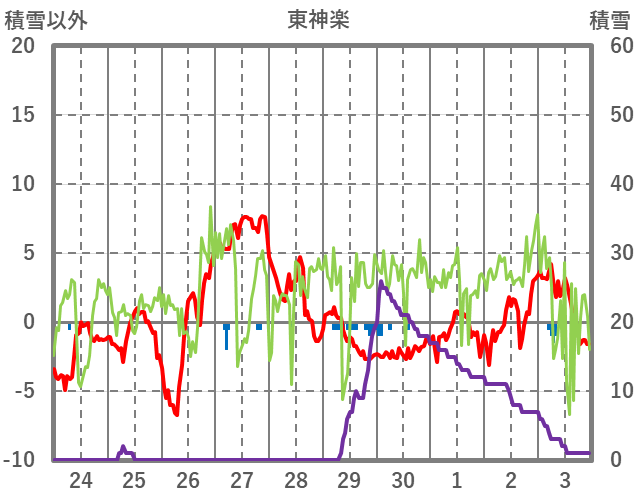 | 日 | 時 | 気温 | 降水 | 風向/風速 | 日照 | 積雪 | 降雪 |