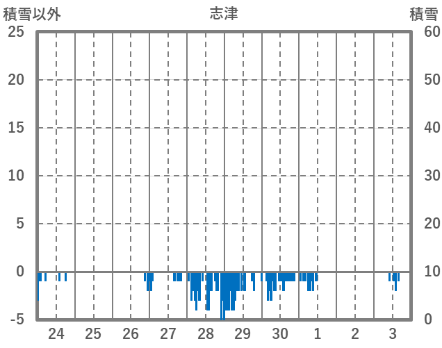 | 日 | 時 | 気温 | 降水 | 風向/風速 | 日照 | 積雪 | 降雪 |