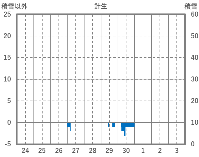 | 日 | 時 | 気温 | 降水 | 風向/風速 | 日照 | 積雪 | 降雪 |