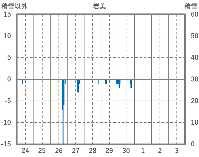 | 日 | 時 | 気温 | 降水 | 風向/風速 | 日照 | 積雪 | 降雪 |