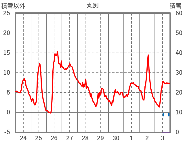 | 日 | 時 | 気温 | 降水 | 風向/風速 | 日照 | 積雪 | 降雪 |
