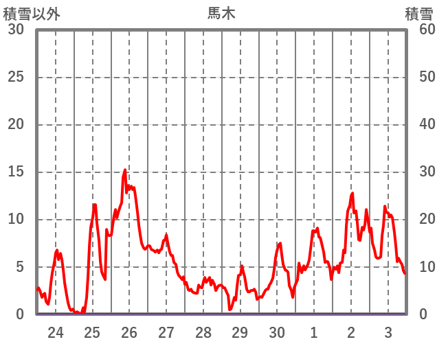 | 日 | 時 | 気温 | 降水 | 風向/風速 | 日照 | 積雪 | 降雪 |