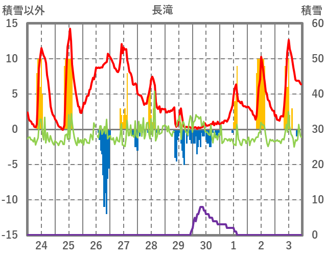 | 日 | 時 | 気温 | 降水 | 風向/風速 | 日照 | 積雪 | 降雪 |