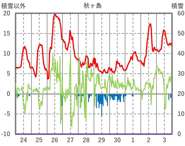 | 日 | 時 | 気温 | 降水 | 風向/風速 | 日照 | 積雪 | 降雪 |
