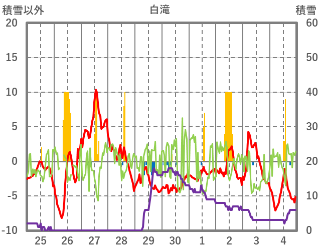 | 日 | 時 | 気温 | 降水 | 風向/風速 | 日照 | 積雪 | 降雪 |