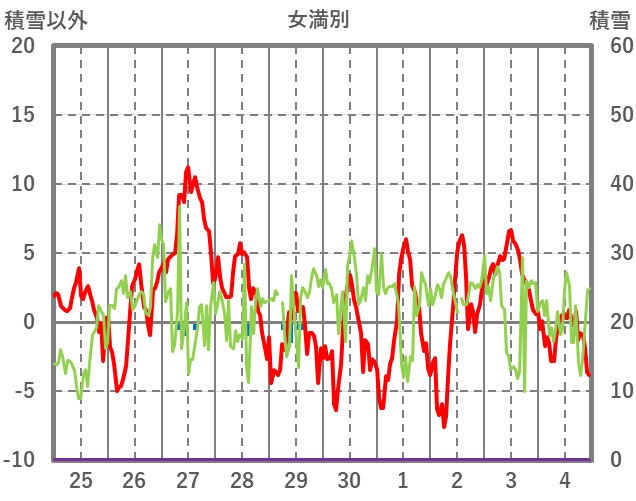 | 日 | 時 | 気温 | 降水 | 風向/風速 | 日照 | 積雪 | 降雪 |
