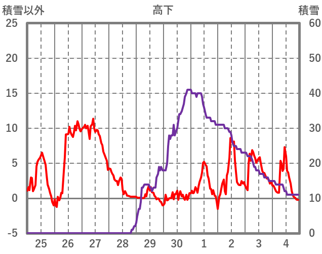 | 日 | 時 | 気温 | 降水 | 風向/風速 | 日照 | 積雪 | 降雪 |