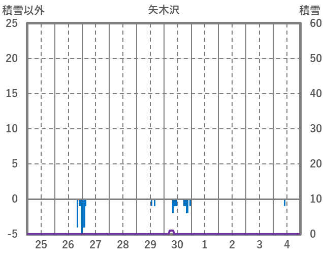 | 日 | 時 | 気温 | 降水 | 風向/風速 | 日照 | 積雪 | 降雪 |