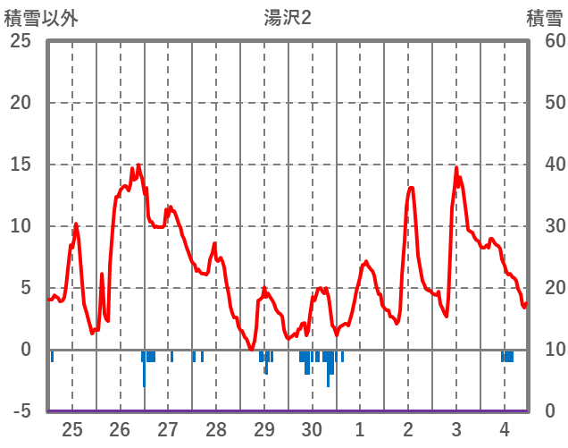 | 日 | 時 | 気温 | 降水 | 風向/風速 | 日照 | 積雪 | 降雪 |