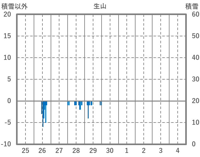| 日 | 時 | 気温 | 降水 | 風向/風速 | 日照 | 積雪 | 降雪 |