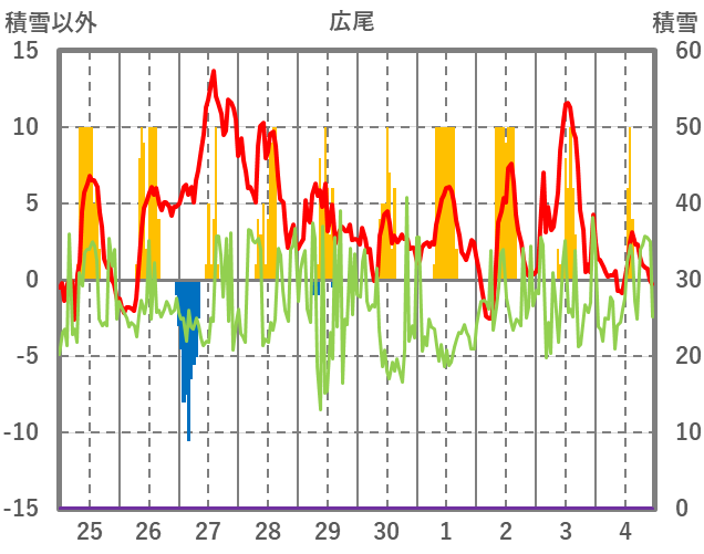 | 日 | 時 | 気温 | 降水 | 風向/風速 | 日照 | 積雪 | 降雪 |