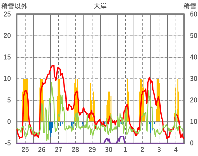 | 日 | 時 | 気温 | 降水 | 風向/風速 | 日照 | 積雪 | 降雪 |