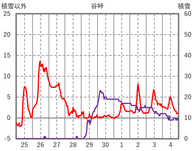 | 日 | 時 | 気温 | 降水 | 風向/風速 | 日照 | 積雪 | 降雪 |