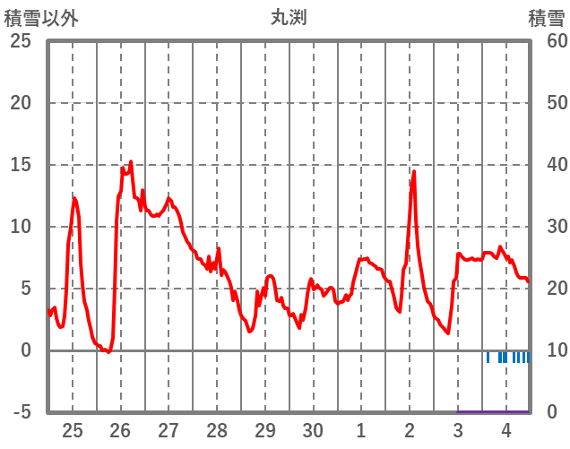 | 日 | 時 | 気温 | 降水 | 風向/風速 | 日照 | 積雪 | 降雪 |