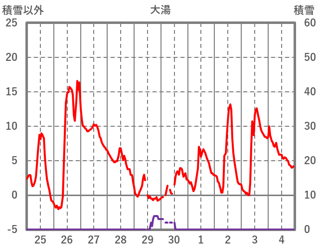 | 日 | 時 | 気温 | 降水 | 風向/風速 | 日照 | 積雪 | 降雪 |