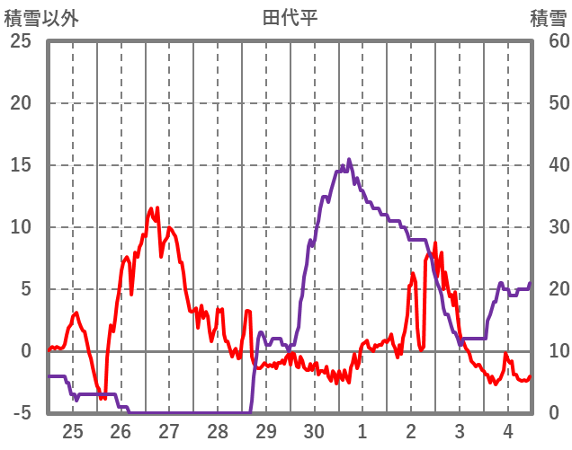 | 日 | 時 | 気温 | 降水 | 風向/風速 | 日照 | 積雪 | 降雪 |
