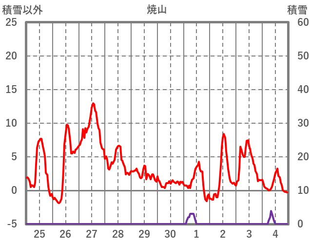 | 日 | 時 | 気温 | 降水 | 風向/風速 | 日照 | 積雪 | 降雪 |
