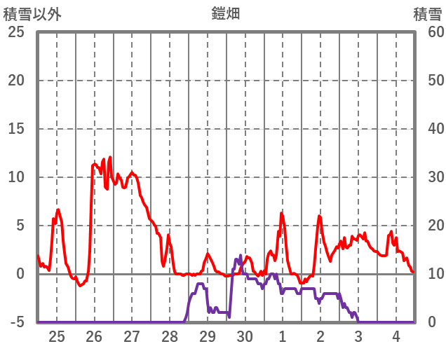 | 日 | 時 | 気温 | 降水 | 風向/風速 | 日照 | 積雪 | 降雪 |