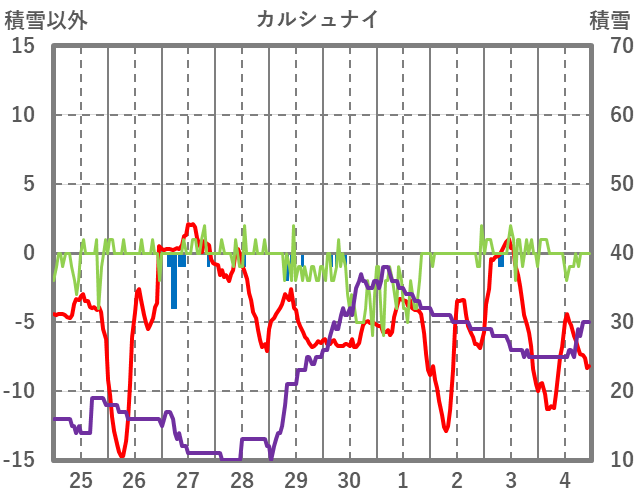| 日 | 時 | 気温 | 降水 | 風向/風速 | 日照 | 積雪 | 降雪 |