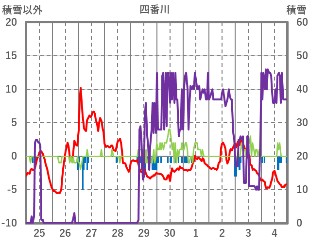 | 日 | 時 | 気温 | 降水 | 風向/風速 | 日照 | 積雪 | 降雪 |