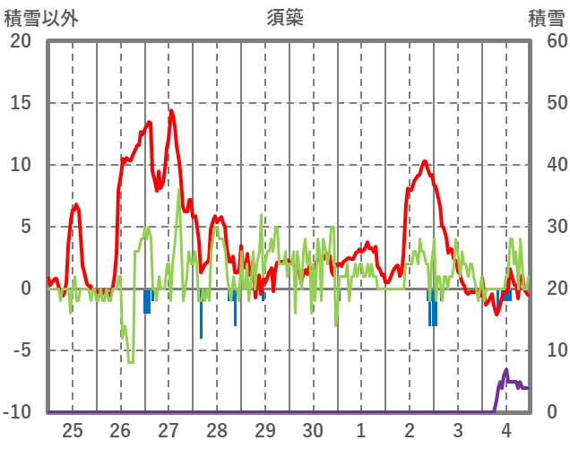 | 日 | 時 | 気温 | 降水 | 風向/風速 | 日照 | 積雪 | 降雪 |