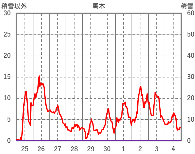 | 日 | 時 | 気温 | 降水 | 風向/風速 | 日照 | 積雪 | 降雪 |