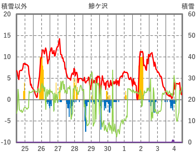 | 日 | 時 | 気温 | 降水 | 風向/風速 | 日照 | 積雪 | 降雪 |