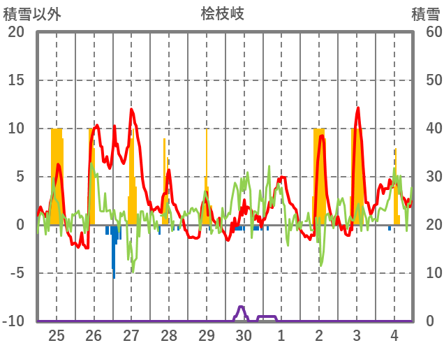 | 日 | 時 | 気温 | 降水 | 風向/風速 | 日照 | 積雪 | 降雪 |