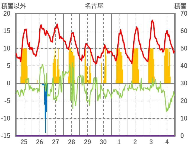 | 日 | 時 | 気温 | 降水 | 風向/風速 | 日照 | 積雪 | 降雪 |