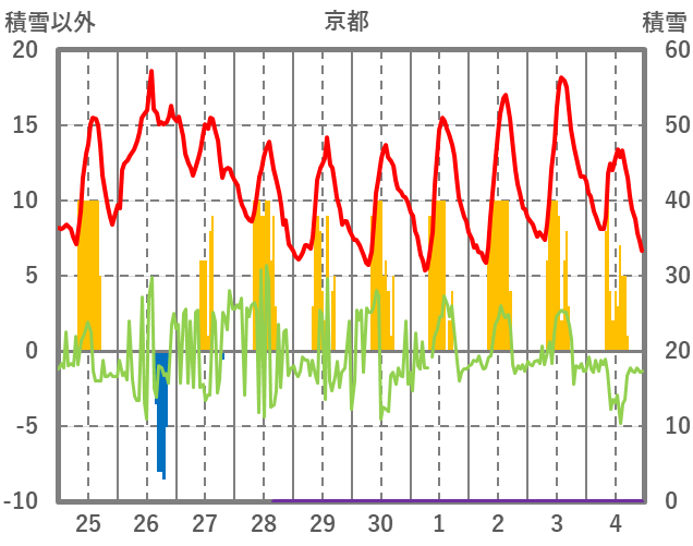 | 日 | 時 | 気温 | 降水 | 風向/風速 | 日照 | 積雪 | 降雪 |