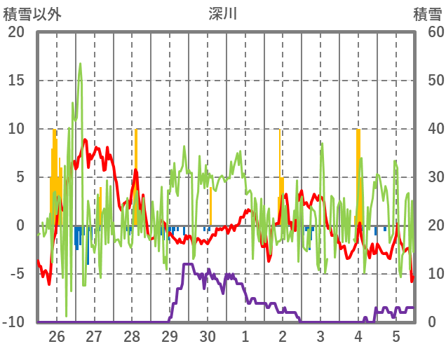 | 日 | 時 | 気温 | 降水 | 風向/風速 | 日照 | 積雪 | 降雪 |
