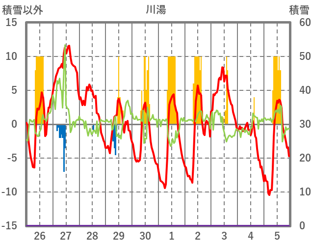 | 日 | 時 | 気温 | 降水 | 風向/風速 | 日照 | 積雪 | 降雪 |