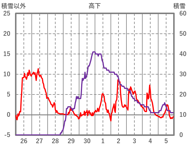 | 日 | 時 | 気温 | 降水 | 風向/風速 | 日照 | 積雪 | 降雪 |