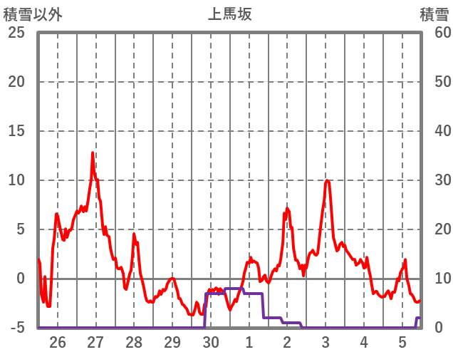 | 日 | 時 | 気温 | 降水 | 風向/風速 | 日照 | 積雪 | 降雪 |