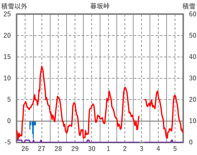 | 日 | 時 | 気温 | 降水 | 風向/風速 | 日照 | 積雪 | 降雪 |