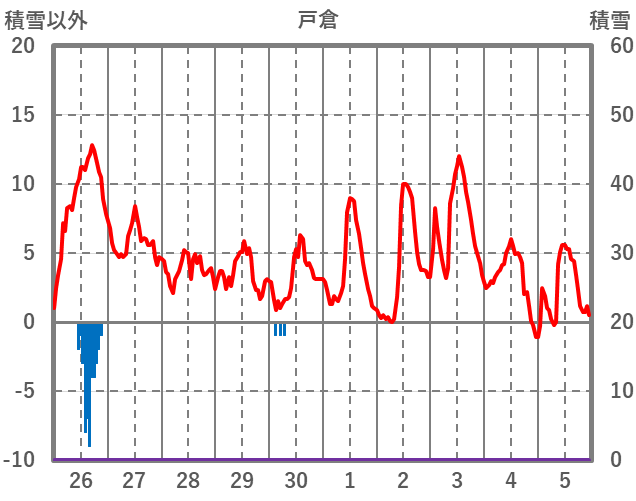 | 日 | 時 | 気温 | 降水 | 風向/風速 | 日照 | 積雪 | 降雪 |