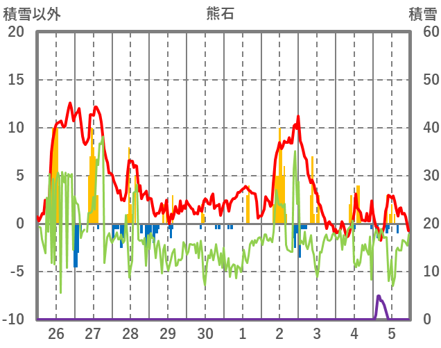 | 日 | 時 | 気温 | 降水 | 風向/風速 | 日照 | 積雪 | 降雪 |