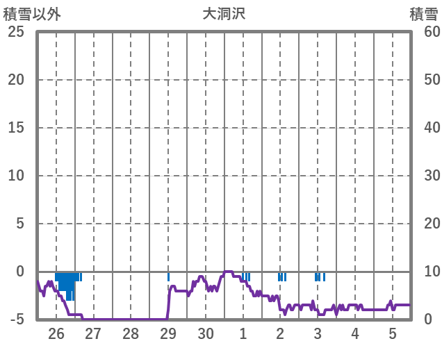 | 日 | 時 | 気温 | 降水 | 風向/風速 | 日照 | 積雪 | 降雪 |