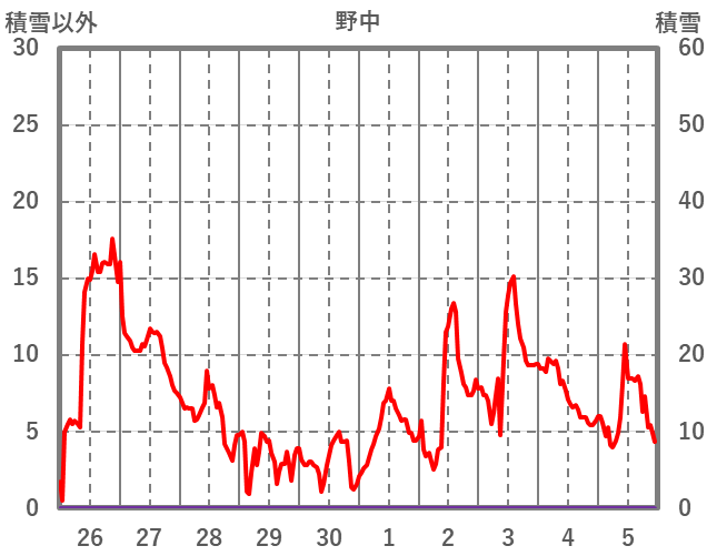 | 日 | 時 | 気温 | 降水 | 風向/風速 | 日照 | 積雪 | 降雪 |