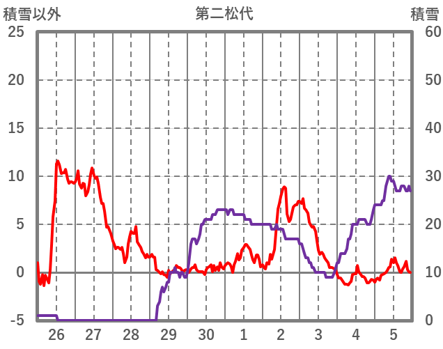 | 日 | 時 | 気温 | 降水 | 風向/風速 | 日照 | 積雪 | 降雪 |