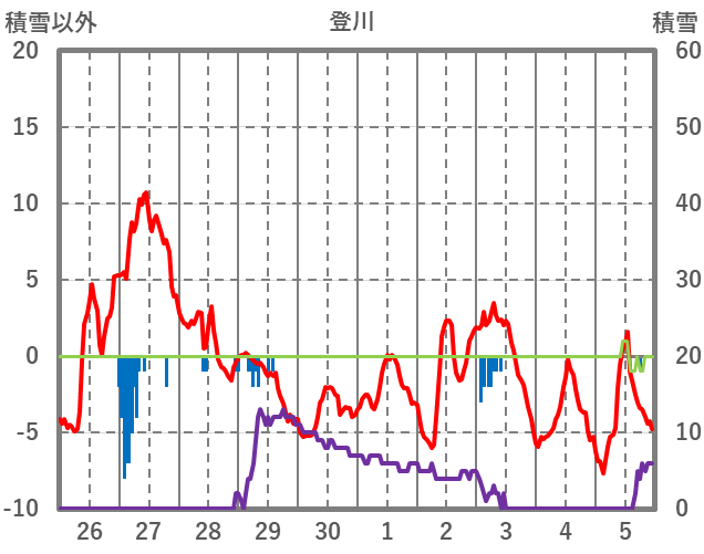 | 日 | 時 | 気温 | 降水 | 風向/風速 | 日照 | 積雪 | 降雪 |