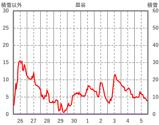 | 日 | 時 | 気温 | 降水 | 風向/風速 | 日照 | 積雪 | 降雪 |